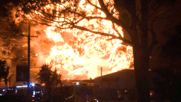 Explosions could be felt kilometres away, with a massive fireball reaching heights of 150 metres....