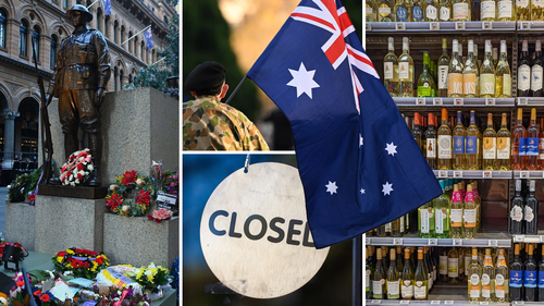 <div class="block-content"><div class="styles__Container-sc-1ylecsg-0 goULFa"><span>The ANZAC day public holiday weekend brings a mix of commemorations, services and restrictions on trading hours across Australia.</span></div></div><div class="block-content"><div class="styles__Container-sc-1ylecsg-0 goULFa"><span>While essential retailers like chemists and petrol stations will remain open, different states have their own unique restrictions on business hours.</span></div></div><div class="block-content"><div class="styles__Container-sc-1ylecsg-0 goULFa"><span>Here is a guide of restrictions and exemptions you can expect to see at local businesses over the long weekend.</span></div></div><div><div id="adspot-mobile-medium"></div></div><div class="block-content"><div class="styles__Container-sc-1ylecsg-0 goULFa"><strong><span>LIVE UPDATES:</span></strong><span> </span><a href="https://www.9news.com.au/world/us-israel-iran-war-live-updates-april-22-donald-trump-latest-world-news-headlines/c3a8451b-6736-489e-8f50-adf4641cb25c" target="_blank"><strong><span>Trump says he will extend ceasefire</span></strong></a></div></div><div class="block-content"><div class="styles__Container-sc-1ylecsg-0 goULFa"><h3><span>Saturday 25th of April: ANZAC DAY</span></h3></div></div><div class="block-content"><div class="styles__Container-sc-1ylecsg-0 goULFa"><strong><span>NSW</span></strong></div></div><div class="block-content"><div class="styles__Container-sc-1ylecsg-0 goULFa"><span> According to the </span><em><span>Retail Trading Amendment (ANZAC Day Trading Hours) Act 2024</span></em><span> (NSW), there are full day restrictions for non-exempt retail businesses such as large supermarkets, department stores and fashion outlets.</span></div></div><div><div class="OUTBRAIN" data-reactroot="" data-src="//www.9news.com.au/national/anzac-day-long-weekend-business-hours-across-australia/d2d3b5c0-77f5-4ee1-9938-d36f5dad6f4c" data-widget-id="AR_5"></div></div><div class="block-content"><div class="styles__Container-sc-1ylecsg-0 goULFa"><span>Exemptions exist for chemists, cafes, takeaway food stores, news agencies, petrol stations, fruit shops, florists and more</span></div></div><div class="block-content"><div class="styles__Container-sc-1ylecsg-0 goULFa"><span>Small shop businesses employing up to four employees and no more than two owners are also an exception if the employees choose to work on the public holiday.</span></div></div><div class="block-content"><div class="styles__Container-sc-1ylecsg-0 goULFa"><strong><span>VICTORIA</span></strong></div></div><div class="block-content"><div class="styles__Container-sc-1ylecsg-0 goULFa"><span>Retailers are to be closed between 12:01am and 1:00pm on ANZAC day, according to the </span><em><span>Shop Trading Reform Act 1996</span></em><span> (VIC) and </span><em><span>Anzac Day Act 1958</span></em><span> (VIC).</span></div></div><div class="block-content"><div class="styles__Container-sc-1ylecsg-0 goULFa"><span>Similar to NSW, exempt shops that are not restricted by half-day hours include convenience stores, small shops and kiosks.</span></div></div><div class="player__video-container"><img alt="" src="https://imageresizer.static9.net.au/BDPyv8YiA6WxlSJR-77IzQFj9BE=/750x0/https%3A%2F%2Fvms-network-images-prod.s3-ap-southeast-2.amazonaws.com%2F2026%2F04%2F767936%2Fpickerimage.jpg"/></div><div class="block-content"><div class="styles__Container-sc-1ylecsg-0 goULFa"><strong><span>TASMANIA</span></strong></div></div><div class="block-content"><div class="styles__Container-sc-1ylecsg-0 goULFa"><span>In Tasmania, it is an offence to open a non-exempt store before 12:30pm with possible fines for operators on ANZAC Day according to </span><em><span>Anzac Day Observance 1929</span></em><span> (TAS).</span></div></div><div class="block-content"><div class="styles__Container-sc-1ylecsg-0 goULFa"><span>Exempt stores listed in the Act include chemists, petrol stations, cafes, restaurants and shops that are not located within a shopping centre and have no more than 10 employees in the shop on any day of the month may also be exempt.</span></div></div><div class="block-content"><div class="styles__Container-sc-1ylecsg-0 goULFa"><span>However, regardless of any exemptions, requiring an employee to work on ANZAC Day, or any public holiday, is considered an offence without a written agreement from the employee.</span></div></div><div class="block-content"><div class="styles__Container-sc-1ylecsg-0 goULFa"><strong><span>QUEENSLAND</span></strong></div></div><div class="block-content"><div class="styles__Container-sc-1ylecsg-0 goULFa"><span>The </span><em><span>Trading (allowable Hours) Act 1990</span></em><span> (QLD), states all trading for major retailers and non-exempt shops is banned on the ANZAC Day public holiday.</span></div></div><div class="block-content"><div class="styles__Container-sc-1ylecsg-0 goULFa"><span>Smaller shops can open from 1pm and exempt shops like pharmacies, cafes, bakeries and news agents can open for business as usual.</span></div></div><div class="block-content"><div class="styles__Container-sc-1ylecsg-0 goULFa"><strong><span>READ MORE:</span></strong><span> </span><a href="https://www.9news.com.au/national/manhunt-for-newcastle-prisoner-wrongly-released/c1c173f8-4f23-423c-bf07-ee95b3815d45" target="_blank"><strong><span>Police hunt inmate wrongly released from NSW prison</span></strong></a></div></div><div class="block-content"><div class="styles__Container-sc-1ylecsg-0 goULFa"><span>Food and grocery stores can trade without restriction, though other independent retailers must remain closed until 1pm on ANZAC day.</span></div></div><div class="block-content"><div class="styles__Container-sc-1ylecsg-0 goULFa"><span>Generally no liquor is to be sold before 1pm, though there are exemptions for licensed premises for liquor that must be sold with a meal between 10am and 1pm.</span></div></div><div class="block-content"><div class="styles__Container-sc-1ylecs
