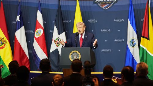 <div class="block-content"><div class="styles__Container-sc-1ylecsg-0 goULFa"><span>China's embassy in the US shared an AI-generated video poking fun at </span><a href="https://www.9news.com.au/donald-trump" rel="" target="" title="Donald Trump"><span>Donald Trump</span></a><span>'s Shield of the Americas Summit, just days after the US president took the stage at the Florida event to warn about "hostile foreign influence" in Latin America.</span></div></div><div class="block-content"><div class="styles__Container-sc-1ylecsg-0 goULFa"><span>The video, published by the </span><a href="https://www.9news.com.au/china" rel="" target="" title="Chinese"><span>Chinese</span></a><span> embassy on its X account and produced by the state news agency Xinhua News Agency, is titled "Shield of the Americas, or shackles of the Americas?"</span></div></div><div class="block-content"><div class="styles__Container-sc-1ylecsg-0 goULFa"><span>The 18-second animation shows a bald eagle dressed in a suit presiding over a meeting of white doves that appear to represent </span><a href="https://www.9news.com.au/world" rel="" target="" title="Latin American"><span>Latin American</span></a><span> countries.</span></div></div><div><div id="adspot-mobile-medium"></div></div><div class="block-content"><div class="styles__Container-sc-1ylecsg-0 goULFa"><strong><span>LIVE UPDATES: </span></strong><a href="https://www.9news.com.au/world/us-israel-attack-iran-live-updates-march-13-donald-trump-latest-news-headlines/2c48fadd-6ec9-4b19-9392-9ec9255db683"><strong><span>Trump says new Iran leader 'probably' alive as conspiracies swirl</span></strong></a></div></div><div class="block-content"><div class="styles__Container-sc-1ylecsg-0 goULFa"><span>The eagle presses a red button that initially deploys an atomic bomb blast before promising to "keep everyone safe" with a large red, white and blue shield.</span></div></div><div class="block-content"><div class="styles__Container-sc-1ylecsg-0 goULFa"><span>However, the shield soon turns into a cage that traps the frightened doves, while the Eagle says: "Relax, sometimes security comes with a little control."</span></div></div><div class="block-content"><div class="styles__Container-sc-1ylecsg-0 goULFa"><span>CNN contacted the US State Department for comment on the video and is awaiting a response.</span></div></div><div><div class="OUTBRAIN" data-reactroot="" data-src="//www.9news.com.au/world/donald-trump-chinese-embassy-mocks-us-presidents-shield-of-the-americas-in-ai-video/35fe581f-cca2-400b-ad06-0ba08ffae6be" data-widget-id="AR_5"></div></div><div class="block-content"><div class="styles__Container-sc-1ylecsg-0 goULFa"><span>The video, released days after a meeting that brought together right-wing and centre-right leaders from 12 Latin American countries, seems to question the proposal presented by Trump during the summit: the creation of a "regional military coalition".</span></div></div><div class="block-content"><div class="styles__Container-sc-1ylecsg-0 goULFa"><span>Although the summit was mainly presented as a security initiative, Trump also took the opportunity to warn about China's growing presence in the region, as part of a broader plan by his administration to reaffirm the United States' "preeminence" over the Western Hemisphere.</span></div></div><div class="block-content"><div class="styles__Container-sc-1ylecsg-0 goULFa"><span>"We will deny non-Hemispheric competitors the ability to position forces or other threatening capabilities, or to own or control strategically vital assets, in our Hemisphere," the administration declared in November 2025 while unveiling the "Trump Corollary" to the centuries-old Monroe Doctrine.</span></div></div><div class="block-content"><div class="styles__Container-sc-1ylecsg-0 goULFa"><strong><span>READ MORE:</span></strong><span> </span><a href="https://www.9news.com.au/national/interest-rates-anz-raises-fixes-rates-in-anticipation-of-rba-cash-rate-hike/1437e009-acfd-4d1d-b830-ca4d75f4e87d"><strong><span>Bank jumps the gun with fixed rate hike before predicted RBA double blow</span></strong></a></div></div><div class="block-content"><div class="styles__Container-sc-1ylecsg-0 goULFa"><span>But while James Monroe ordered Europe to stay away from the Americas, Trump is keen on shooing China away.</span></div></div><div class="block-content"><div class="styles__Container-sc-1ylecsg-0 goULFa"><span>In his inaugural address in 2025, Trump claimed falsely that China is "operating" the Panama Canal.</span></div></div><div class="block-content"><div class="styles__Container-sc-1ylecsg-0 goULFa"><span>In fact, a Hong Kong-based company owned two key terminals on either end of the canal at the time.</span></div></div><div class="block-content"><div class="styles__Container-sc-1ylecsg-0 goULFa"><span>Last month, Panama's high court ruled the arrangement illegal, a decision Beijing decried as "truly shameful and pathetic".</span></div></div><div class="block-content"><div class="styles__Container-sc-1ylecsg-0 goULFa"><span>The ruling notwithstanding, Trump continues to raise the issue in public.</span></div></div><div class="block-content"><div class="styles__Container-sc-1ylecsg-0 goULFa"><span>At the summit, the president said that the US "will not allow hostile foreign influence to gain a foothold in this hemisphere – that includes the Panama canal."</span></div></div><div class="block-content"><div class="styles__Container-sc-1ylecsg-0 goULFa"><span>For decades, Beijing has expanded its commercial, financial, and infrastructure ties in the region.</span></div></div><div class="block-content"><div class="styles__Container-sc-1ylecsg-0 goULFa"><span>In recent years, China has become one of the main trading partners for several Latin American economies and has financed large strategic projects.</span></div></div><div class="block-content"><div class="styles__Container-sc-1ylecsg-0 goULFa"><span>One of the most recent examples is the "mega-port