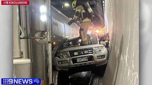 <div class="block-content"><div class="styles__Container-sc-1ylecsg-0 goULFa"><span>A </span><a href="https://www.9news.com.au/melbourne" rel="" target="" title="Melbourne"><span>Melbourne</span></a><span> driver has had an incredible escape after their car was crushed by a tanker truck against the barrier of a Melbourne tunnel last night.</span></div></div><div class="block-content"><div class="styles__Container-sc-1ylecsg-0 goULFa"><span>Extraordinary CCTV vision from inside the Burnley Tunnel shows the fuel tanker seemingly unaware of a Mitsubishi Pajero in its path as it indicated and moved into the left outbound lane about 9.15pm.</span></div></div><div class="block-content"><div class="styles__Container-sc-1ylecsg-0 goULFa"><span>Sparks and debris flew as the Pajero became squashed between the truck and the wall of the tunnel.</span></div></div><div><div id="adspot-mobile-medium"></div></div><div class="block-content"><div class="styles__Container-sc-1ylecsg-0 goULFa"><strong><span>READ MORE:</span></strong><span> </span><a href="https://www.9news.com.au/national/toolooa-fatal-house-fire-charges-murder-gladstone-queensland-news/bb389c85-26aa-4156-a6f4-e604d7be8634" target="_blank"><strong><span>Woman charged with murder after mother, boys die in house fire</span></strong></a></div></div><div class="block-content"><div class="styles__Container-sc-1ylecsg-0 goULFa"><span>Both vehicles came to a grinding halt after the fuel tanker slammed on the brakes.</span></div></div><div class="block-content"><div class="styles__Container-sc-1ylecsg-0 goULFa"><span>Emergency services were on scene within minutes. Amazingly no one was physically hurt.</span></div></div><div class="block-content"><div class="styles__Container-sc-1ylecsg-0 goULFa"><span>Traffic was brought to a standstill as heavy machinery was brought in to separate the two vehicles and remove them from the tunnel.</span></div></div><div><div class="OUTBRAIN" data-reactroot="" data-src="//www.9news.com.au/national/burnley-tunnel-crash-melbourne/7cd188f9-1e91-47c8-99fc-b119572e23a1" data-widget-id="AR_5"></div></div><div class="block-content"><div class="styles__Container-sc-1ylecsg-0 goULFa"><span>Toll road operator Transurban says it monitors the tunnel around the clock and had its crews on scene within four minutes.</span></div></div><div class="block-content"><div class="styles__Container-sc-1ylecsg-0 goULFa"><strong><span>READ MORE:</span></strong><span> </span><a href="https://www.9news.com.au/national/rebel-wilson-lashed-in-film-lawsuit/b6c29969-c92c-4ef9-9e8c-63ba00bd2f51" target="_blank"><strong><span>'Clearly not too busy': Rebel Wilson lashed in film lawsuit</span></strong></a></div></div><div class="block-content"><div class="styles__Container-sc-1ylecsg-0 goULFa"><span>While crash rates in tunnels are relatively low, research shows drivers often "respond differently in enclosed environments", Transurban said.</span></div></div><div class="block-content"><div class="styles__Container-sc-1ylecsg-0 goULFa"><span>"That's why we're encouraging motorists to avoid unnecessary lane changes in tunnels and high-speed areas," a spokesperson said.</span></div></div><div class="block-content"><div class="styles__Container-sc-1ylecsg-0 goULFa"><span>"It's a simple behaviour that can make a real difference in preventing serious incidents."</span></div></div><div class="block-content"><div class="styles__Container-sc-1ylecsg-0 goULFa"><span>The driver of the truck received a penalty infringement notice for performing an unsafe lane change.</span></div></div><div class="block-content"><div class="styles__Container-sc-1ylecsg-0 goULFa"><a href="https://www.9news.com.au/national/how-to-follow-9news-digital/29855bb1-ad3d-4c38-bc25-3cb52af1216f"><strong><span>DOWNLOAD THE 9NEWS APP</span></strong></a><strong><span>: Stay across all the latest in breaking news, sport, politics and the weather via our news app and get notifications sent straight to your smartphone. Available on the</span></strong><span> </span><a href="https://apps.apple.com/au/app/9news/id1010533727"><strong><span>Apple App Store</span></strong></a><span> </span><strong><span>and</span></strong><span> </span><a href="https://play.google.com/store/apps/details?id=nineNewsAlerts.nine.com&hl=en_AU&pli=1"><strong><span>Google Play</span></strong></a><strong><span>.</span></strong></div></div>