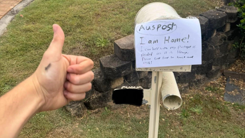 <div class="block-content"><div class="styles__Container-sc-1ylecsg-0 goULFa"><span>An Australia Post customer has been left scratching their head after missing an important parcel delivery - despite not only being home all day, but even putting up a sign to let the postie know.</span></div></div><div class="block-content"><div class="styles__Container-sc-1ylecsg-0 goULFa"><span>The customer posted a photo earlier this week to Reddit showing them giving a thumbs-up after posting the sign on the mailbox.</span></div></div><div class="block-content"><div class="styles__Container-sc-1ylecsg-0 goULFa"><span>"Auspost, I am home!" it read.</span></div></div><div><div id="adspot-mobile-medium"></div></div><div class="block-content"><div class="styles__Container-sc-1ylecsg-0 goULFa"><strong><span>READ MORE:</span></strong><span> </span><a href="https://www.9news.com.au/national/bluey-christmas-coin-2025-fans-wait-up-to-18-hours-for-collectible/d871ae74-abde-4902-9ea6-72cb2bfa5070" rel="" target="_blank" title="'Are you at work?': Bluey fans wait up to 18 hours for a coin"><strong><span>'Are you at work?': Bluey fans wait up to 18 hours for a coin</span></strong></a><span></span></div></div><div class="block-content"><div class="styles__Container-sc-1ylecsg-0 goULFa"><span>"I can help with my package if need be as it is heavy. Please feel free to knock and ask!"</span></div></div><div class="block-content"><div class="styles__Container-sc-1ylecsg-0 goULFa"><span>The customer said similar missed drop-offs had happened before.</span></div></div><div class="block-content"><div class="styles__Container-sc-1ylecsg-0 goULFa"><span>"Very expensive and large package coming today … ain't no way in hell I'm driving to the airport to pick it up because of my area's driver!" they wrote.</span></div></div><div><div class="OUTBRAIN" data-reactroot="" data-src="//www.9news.com.au/national/australia-post-missed-delivery-viral-post-reddit/e5eced7c-d49e-443a-aff5-ac2ff0a0cd8f" data-widget-id="AR_5"></div></div><div class="block-content"><div class="styles__Container-sc-1ylecsg-0 goULFa"><span>"He loves to just put in the 'we missed you' note and speed off, and that's if he even finds the motivation to leave a note at all!"</span></div></div><div class="block-content"><div class="styles__Container-sc-1ylecsg-0 goULFa"><strong><span>READ MORE:</span></strong><span> </span><a href="https://www.9news.com.au/national/peter-alexander-ai-campaign-dogs-expert-commentary/307cbe23-bea5-4bcd-8c2e-de9c62838a46" rel="" target="_blank" title=""><strong><span>Whatever you think about Peter Alexander's 'creepy' AI dogs, you're about to see a lot more ads like it</span></strong></a><strong><span></span></strong></div></div><div class="block-content"><div class="styles__Container-sc-1ylecsg-0 goULFa"><span>Despite their precautions, a predictable - if amusing - update soon followed.</span></div></div><div class="block-content"><div class="styles__Container-sc-1ylecsg-0 goULFa"><span>"Are you f------ kidding me," they wrote, holding up a familiar red-and-white collection slip.</span></div></div><div class="block-content"><div class="styles__Container-sc-1ylecsg-0 goULFa"><span>Oddly, despite the customer offering to help due to the package's weight, the "heavy" box was not checked on the card.</span></div></div><div class="block-content"><div class="styles__Container-sc-1ylecsg-0 goULFa"><span>The customer's post sparked a long thread of replies, many of them featuring similar tales of woe.</span></div></div><div class="block-content"><div class="styles__Container-sc-1ylecsg-0 goULFa"><strong><span>READ MORE:</span></strong><span> </span><a href="https://www.9news.com.au/national/mcdonalds-king-street-newtown-council-votes-to-refuse-application/360a7ec3-02b6-44b6-9e72-26d768eecd88" rel="" target="_blank" title=""><strong><span>Residents win fight against McDonald's over proposed restaurant on beloved street</span></strong></a><strong><span></span></strong></div></div><div class="block-content"><div class="styles__Container-sc-1ylecsg-0 goULFa"><span>In follow-up replies, the customer clarified their package had weighed about 9 to 10 kilograms, well within delivery limits.</span></div></div><div class="block-content"><div class="styles__Container-sc-1ylecsg-0 goULFa"><span>They also said they had since taken possession of their package.</span></div></div><div class="block-content"><div class="styles__Container-sc-1ylecsg-0 goULFa"><span>"Hell, I barely even lodged a minor complaint at the office and haven't even called up auspost (sic) to back it," they said.</span></div></div><div class="block-content"><div class="styles__Container-sc-1ylecsg-0 goULFa"><span>"I don't plan on pursuing it because there's no point, it'd only create more negativity and I already have my package."</span></div></div><div class="block-content"><div class="styles__Container-sc-1ylecsg-0 goULFa"><span>9news.com.au has contacted Australia Post for comment.</span></div></div><div class="block-content"><div class="styles__Container-sc-1ylecsg-0 goULFa"><a href="https://www.9news.com.au/national/how-to-follow-9news-digital/29855bb1-ad3d-4c38-bc25-3cb52af1216f" target="_blank"><strong><em><span>DOWNLOAD THE 9NEWS APP</span></em></strong></a><strong><em><span>: Stay across all the latest in breaking news, sport, politics and the weather via our news app and get notifications sent straight to your smartphone. Available on the</span></em></strong><span> </span><a href="https://apps.apple.com/au/app/9news/id1010533727" target="_blank"><strong><em><span>Apple App Store</span></em></strong></a><span> </span><strong><em><span>and</span></em></strong><span> </span><a href="https://play.google.com/store/apps/details?id=nineNewsAlerts.nine.com&hl=en_AU&pli=1" target="_blank"><strong><em><span>Google Play</span></em></strong></a><strong><em><span>.</span></em></strong></div></div>