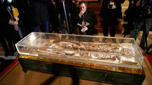 <div class="block-content"><div class="styles__Container-sc-1ylecsg-0 goULFa"><span>In a resurrection of a centuries-old tradition, the bones of St Francis of Assisi are going on public display in the </span><a href="https://www.9news.com.au/italy" rel="" target="_blank" title="Italian"><span>Italian</span></a><span> town he's named for.</span></div></div><div class="block-content"><div class="styles__Container-sc-1ylecsg-0 goULFa"><span>More than 400,000 people have pre-registered to view the relics, which will be on display for a month in commemoration of the 800th anniversary of Francis' death.</span></div></div><div class="block-content"><div class="styles__Container-sc-1ylecsg-0 goULFa"><span>The aim is to revive his message of peace and fraternity that made him one of the most beloved Christian saints and inspired Pope Francis to take his name - the first pope to do so.</span></div></div><div><div id="adspot-mobile-medium"></div></div><div class="block-content"><div class="styles__Container-sc-1ylecsg-0 goULFa"><strong><span>WORLD:</span></strong><span> </span><a href="https://www.9news.com.au/world/donald-trump-says-us-sending-hospital-boat-to-greenland/7fa7e6ac-a649-4a7e-807e-4e3472f18439" target="_blank"><strong><span>Trump offered to send Greenland a 'hospital boat'. The reply was blunt.</span></strong></a></div></div><div class="block-content"><div class="styles__Container-sc-1ylecsg-0 goULFa"><span>The bones themselves are contained in a slim, bulletproof Plexiglas case in the lower Basilica of St Francis in the hilltop Umbrian town the medieval friar made famous.</span></div></div><div class="block-content"><div class="styles__Container-sc-1ylecsg-0 goULFa"><span>Francis, born Giovanni di Pietro di Bernardone, was born in 1181 in Assisi, Umbria.</span></div></div><div class="block-content"><div class="styles__Container-sc-1ylecsg-0 goULFa"><span>A famed mystic, poet and eventual saint, he founded the Franciscan order, which exists to this day, and in his life became a famed and beloved wandering preacher.</span></div></div><div><div class="OUTBRAIN" data-reactroot="" data-src="//www.9news.com.au/world/st-francis-bones-of-famed-italian-saint-on-display-for-pilgrimage-first-time-in-centuries/700443cd-06e9-4bbb-8657-d3a14be36c6a" data-widget-id="AR_5"></div></div><div class="block-content"><div class="styles__Container-sc-1ylecsg-0 goULFa"><strong><span>READ MORE:</span></strong><span> </span><a href="https://www.9news.com.au/national/i-felt-defamed-the-perth-mum-and-business-owner-cancelled-by-metas-ai/2d86f7fd-dc91-4c13-a8a4-411ac938cfac" target="_blank"><strong><span>'I felt defamed': Perth mum and business owner cancelled by Meta's AI</span></strong></a></div></div><div class="block-content"><div class="styles__Container-sc-1ylecsg-0 goULFa"><span>He was canonised less than two years after his death in 1226.</span></div></div><div class="block-content"><div class="styles__Container-sc-1ylecsg-0 goULFa"><span>Since his death he has legendarily become known as a protector and lover of animals.</span></div></div><div class="block-content"><div class="styles__Container-sc-1ylecsg-0 goULFa"><span>His body was in fact lost for centuries after his death, after one of Francis' close followers, Elias, secretly buried the saint's remains in a basilica that was intended to house his tomb.</span></div></div><div class="block-content"><div class="styles__Container-sc-1ylecsg-0 goULFa"><strong><span>ROYALS:</span></strong><span> </span><a href="https://www.9news.com.au/world/andrew-mountbatten-windsor-arrest-photo-of-ex-prince-leaving-uk-police-station-hung-in-louvre/e10fdc79-6ce8-4e68-b84e-36a813a0e7ab" target="_blank"><strong><span>Now-infamous photo of ex-prince Andrew hung in the Louvre</span></strong></a></div></div><div class="block-content"><div class="styles__Container-sc-1ylecsg-0 goULFa"><span>He feared plunderers might seek to steal Francis' body, such was the saint's reputation, and use it to bolster the status of a church of their choosing.</span></div></div><div class="block-content"><div class="styles__Container-sc-1ylecsg-0 goULFa"><span>It was a fairly common medieval practice for invading armies to seize holy relics, or for unscrupulous merchants or religious leaders to swindle them away.</span></div></div><div class="block-content"><div class="styles__Container-sc-1ylecsg-0 goULFa"><span>Relics, including the bones of saints, were often publicly displayed in churches and cathedrals and were objects of prayer for faithful Catholics.</span></div></div><div class="block-content"><div class="styles__Container-sc-1ylecsg-0 goULFa"><strong><span>READ MORE:</span></strong><span> </span><a href="https://www.9news.com.au/world/maralago-shooting-us-secret-service-shoots-man-at-donald-trumps-florida-residence/46f8705e-f4dd-4894-979f-de682908e330" target="_blank"><strong><span>Gunman shot dead at Mar-a-Lago identified as missing 21-year-old</span></strong></a></div></div><div class="block-content"><div class="styles__Container-sc-1ylecsg-0 goULFa"><span>Thus, Francis' body remained buried anonymously under a column in a building that was meant to proclaim his holy glory and lure pilgrims - and their money - to Assisi.</span></div></div><div class="block-content"><div class="styles__Container-sc-1ylecsg-0 goULFa"><span>The bones were discovered in 1818 during renovation works and Pope Pius VII declared them to belong to Francis.</span></div></div><div class="block-content"><div class="styles__Container-sc-1ylecsg-0 goULFa"><h3><strong><span>First pilgrims file in</span></strong></h3></div></div><div class="block-content"><div class="styles__Container-sc-1ylecsg-0 goULFa"><span>Security was tight but discreet yesterday morning local time as the first pilgrims passed through metal detectors before filing into the basilica.</span></div></div><div class="block-content"><div class="styles__Container-sc-1ylecsg-0 goULFa"><span>Police declined to provide details, but said extra officers, 
