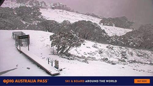 <div class="block-content"><div class="styles__Container-sc-1ylecsg-0 goULFa"><span>Victoria and parts of lower New South Wales have been covered with an unseasonal dumping of snow throughout the high country on following a cold front that crossed Australia's southeast overnight.</span></div></div><div class="block-content"><div class="styles__Container-sc-1ylecsg-0 goULFa"><span>The snowfall hit Mount Hotham this morning and blanketed the Hotham Alpine Ski Resort.</span></div></div><div class="block-content"><div class="styles__Container-sc-1ylecsg-0 goULFa"><span>However, Melbourne could still struggle to hit the Bureau of Meteorology's predicted forecast of 17 degrees highs and is set to feel as much as five degrees cooler than the still-air temperature for most of today's public holiday.</span></div></div><div><div id="adspot-mobile-medium"></div></div><div class="block-content"><div class="styles__Container-sc-1ylecsg-0 goULFa"><span>This is due to persistent gusty winds coming from the west.</span></div></div><div class="block-content"><div class="styles__Container-sc-1ylecsg-0 goULFa"><strong><span>READ MORE:</span></strong><span> </span><a href="https://www.9news.com.au/world/bella-culley-update-pregnant-british-teen-arrested-for-drug-smuggling-in-georgia-released-after-guilty-verdict/ffa2048a-de7c-4169-959b-2f9e0964601c" target="_blank"><strong><span>How pregnant teen went from Thai holiday to jail in Georgia</span></strong></a></div></div><div class="block-content"><div class="styles__Container-sc-1ylecsg-0 goULFa"><strong><span>READ MORE:</span></strong><span> </span><a href="https://www.9news.com.au/world/donald-trump-cnn-poll-worst-disapproval-rating-ever/9de1f1b2-6c22-400e-8e61-f077957599c5" target="_blank"><strong><span>Trump plummets to a stunning new low</span></strong></a></div></div><div class="block-content"><div class="styles__Container-sc-1ylecsg-0 goULFa"><span>Those winds are expected to come with intermittent showers, with a possibility of a thunderstorm.</span></div></div><div><div class="OUTBRAIN" data-reactroot="" data-src="//www.9news.com.au/national/mount-hotham-victoria-unseasonable-november-snowfall/d655a302-950d-4e4b-8ed2-be8badaa074c" data-widget-id="AR_5"></div></div><div class="block-content"><div class="styles__Container-sc-1ylecsg-0 goULFa"><span>The chance of Melbourne thunderstorms is set to be highest during the mid-afternoon.</span></div></div><div class="block-content"><div class="styles__Container-sc-1ylecsg-0 goULFa"><span>Melbourne has had a relatively dry 2025, with below-average rainfall in seven of the 10 months so far.</span></div></div><div class="block-content"><div class="styles__Container-sc-1ylecsg-0 goULFa"><span></span><a href="https://www.9news.com.au/national/how-to-follow-9news-digital/29855bb1-ad3d-4c38-bc25-3cb52af1216f" target="_blank"><strong><em><span>DOWNLOAD THE 9NEWS APP</span></em></strong></a><strong><em><span>: Stay across all the latest in breaking news, sport, politics and the weather via our news app and get notifications sent straight to your smartphone. Available on the</span></em></strong><span> </span><a href="https://apps.apple.com/au/app/9news/id1010533727" target="_blank"><strong><em><span>Apple App Store</span></em></strong></a><span> </span><strong><em><span>and</span></em></strong><span> </span><a href="https://play.google.com/store/apps/details?id=nineNewsAlerts.nine.com&hl=en_AU&pli=1" target="_blank"><strong><em><span>Google Play</span></em></strong></a><strong><em><span>.</span></em></strong></div></div>